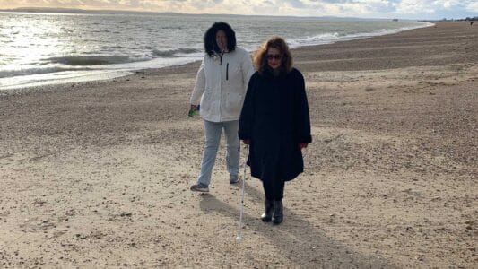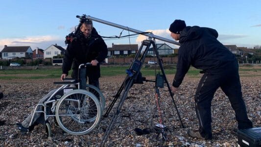 The VR filming took place on Eastney Beach, Portsmouth, a location of personal significance to Elizabeth. Our goal was to immerse the viewer in this environment, seated on the beach and experiencing Elizabeth’s story from a wheelchair’s perspective. By fostering this sense of presence, we aimed to create a space where viewers could absorb and empathise with Elizabeth’s journey.